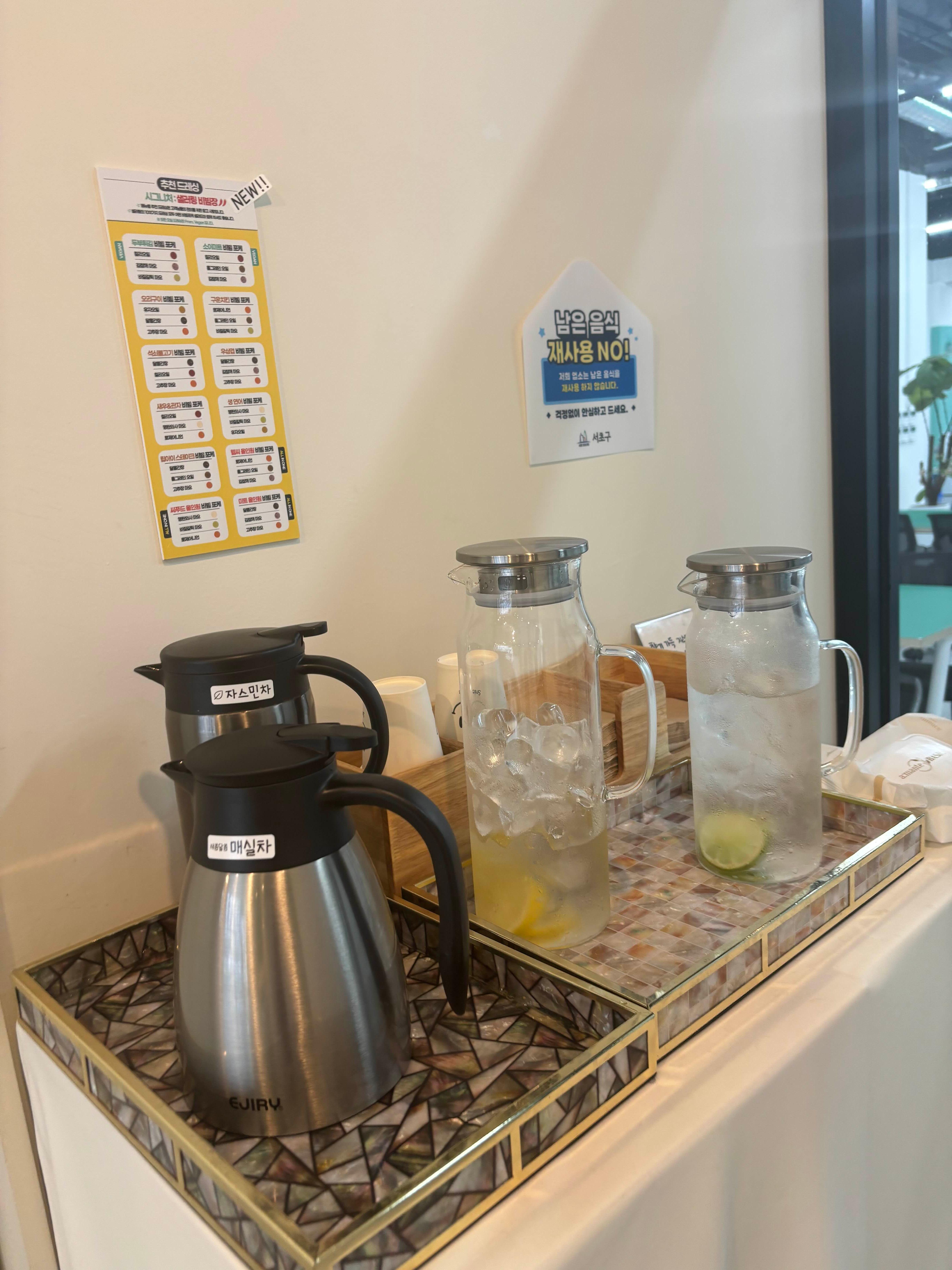 레몬과 라임이 들어간 물도 준비되어 있으니 알아두면 좋을것 같다.