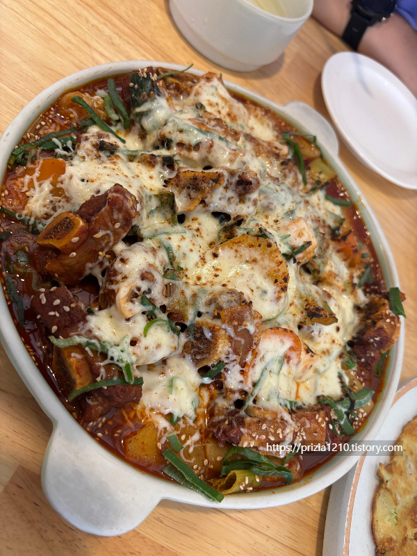 메인요리인 갈비찜 보통맛 + 치즈추가