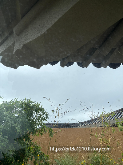 한옥카페에서 차 마시며 떨어지는 빗방울 감상을 할 수 있었다.