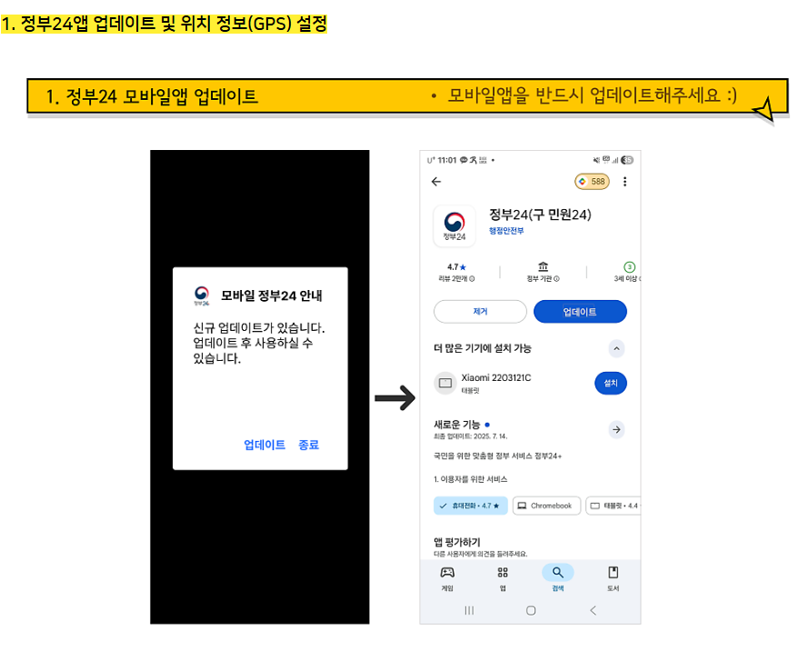 정부24앱이 스크린샷이 보호되어 있어 내가 실제로