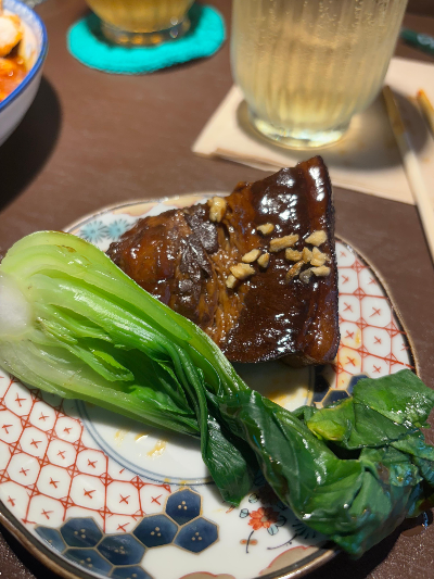 양념아주 잘된 수비드한 오겹살을 깔끔한 청경채 곁들여 먹는 느낌