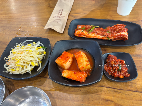 밑반찬은 슴슴한 콩나물과 새콤한 깍두기
