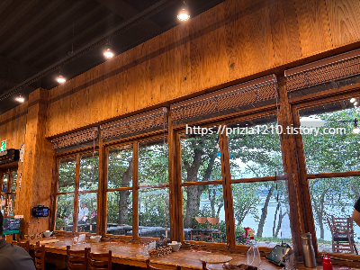 들어가면 자리를 안내해주시는데 올바릇 식당의 장점 중 하나인 호수를 바라보며