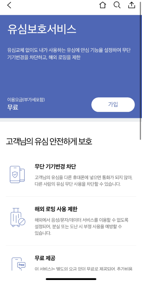유심보호 서비스 가입은 무료로 제공이 되고 있으며