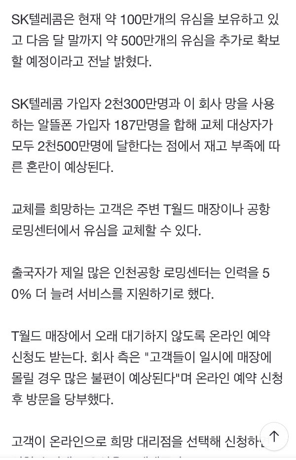 유심을 무료로 교체해 주고는 있으나 직장인들이